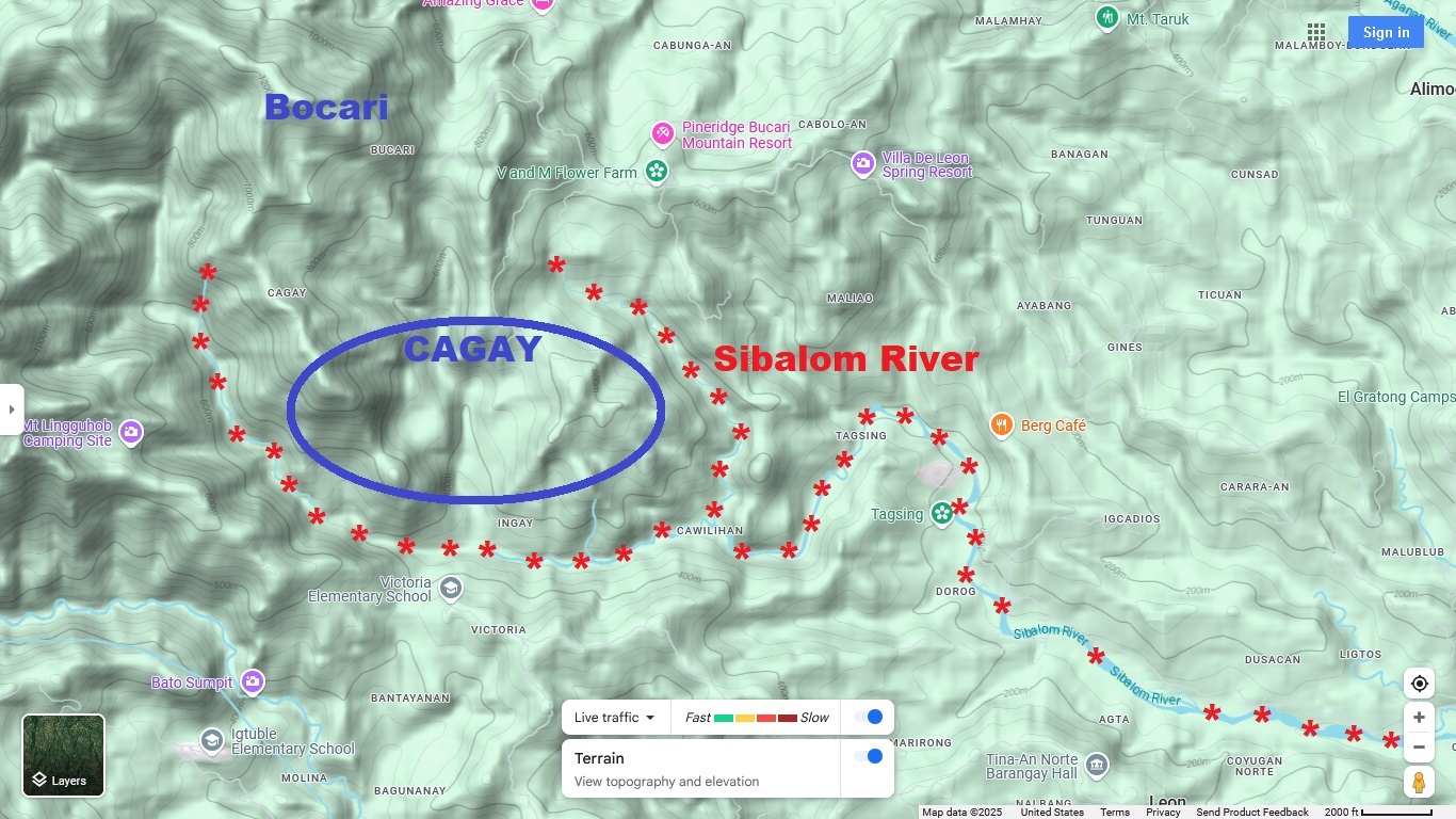 On Mt. Cagay, below Bocari, surrounded by the Sibalom River