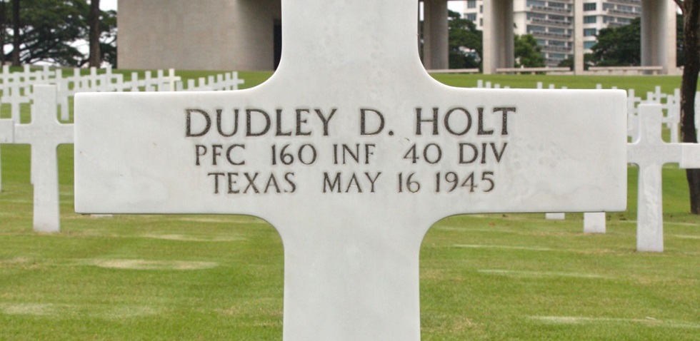 HOLT, DUDLEY D., Pfc., son of Hale Holt, Timpson. Entered Army, 1942, trained in Hawaii. Served on Luzon and S. Pacific. Awarded GC Medal, Pacific Medal, Purple Heart. Killed in Action on Buccri Panay, Philippine Island, 1945.