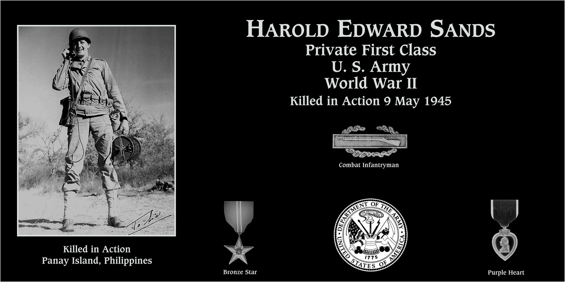 Pfc. Harold Edward Sands, 160th Infantry Regiment, killed in action on Panay Island on May 9, 1945.