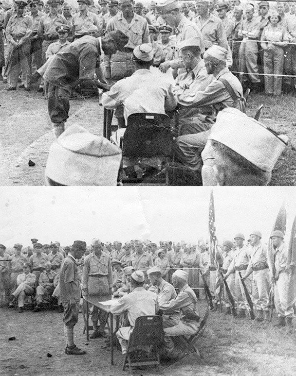 "At the center was a stage where Colonel Stanton stood. Representing the Japanese Army, the Tozuka unit commander loudly read out the statement of surrender of the Japanese Army to the US Forces. As expected from the look of the setting, the ceremony ended rather simply."