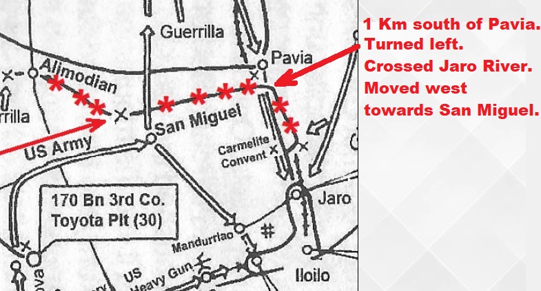 In the early morning of March 19,* they had crossed the Jaro River behind the town hall of Pavia. They reached a coconut grove about half a kilometer northeast of the town where they stayed to wait for the rest of the group.