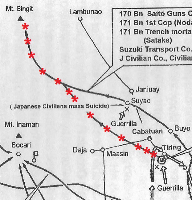 *Mt. Bongbong - based on the Ishikawa map and the MacArthur map, Mt. Bongbong was Mt. Igbombon (old map) or Mt. Igbongbong (current Google map). There is also a Mt. Bagombon (old map) north of Mt. Singit but this wasn't Mt. Bongbong.