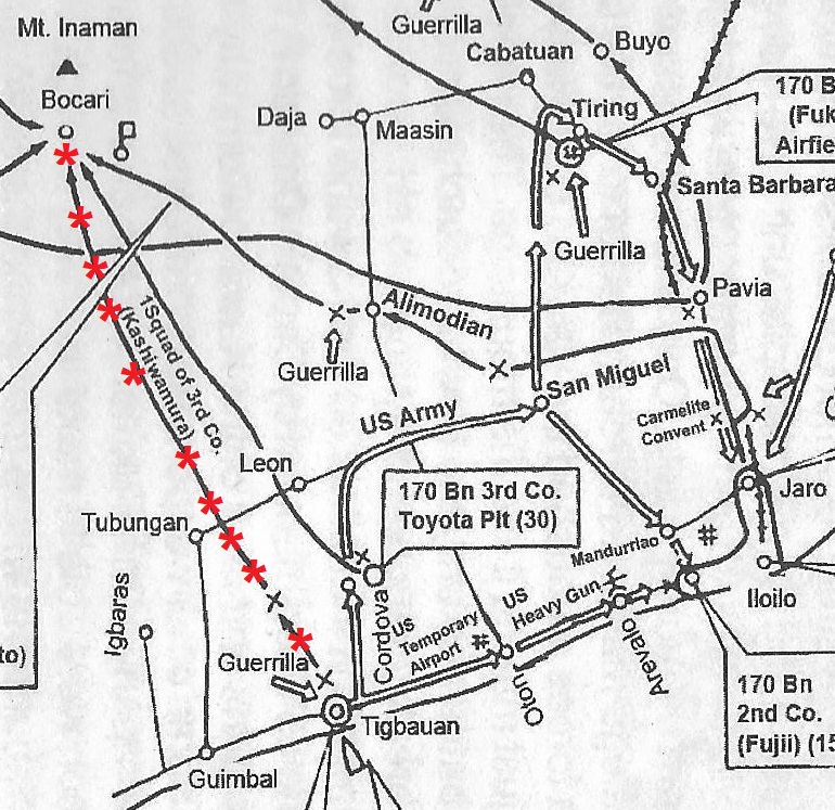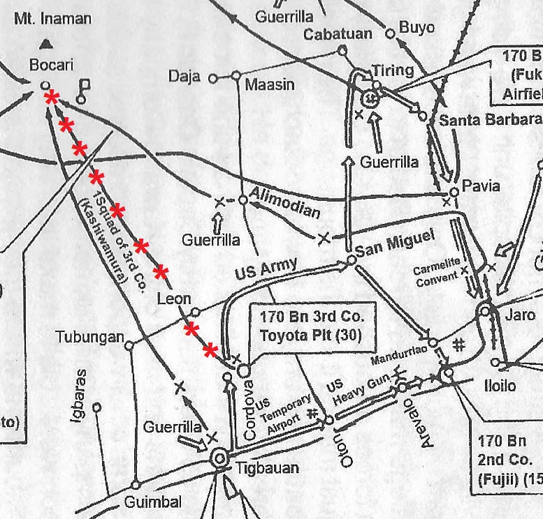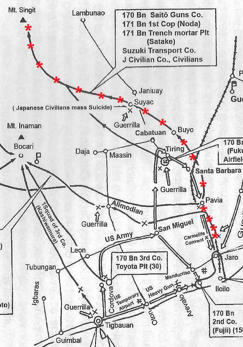 The withdrawal of the Japanese Forces to the mountains of Iloilo was done by 10 groups going to two destinations, Bocari and Mt. Bongbong*/Mt. Singit. Overall Map The Situation at Jaro