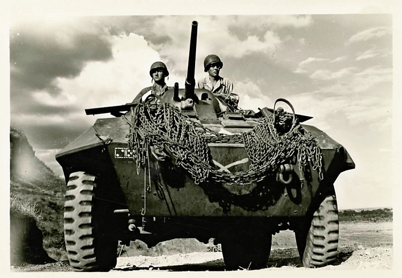 1130 13 March 1945. Rear Admiral STRUBLE went ashore for a conference with General EICHELBERGER, Commanding General, EIGHTH Army, at FORTIETH Division Headquarters.