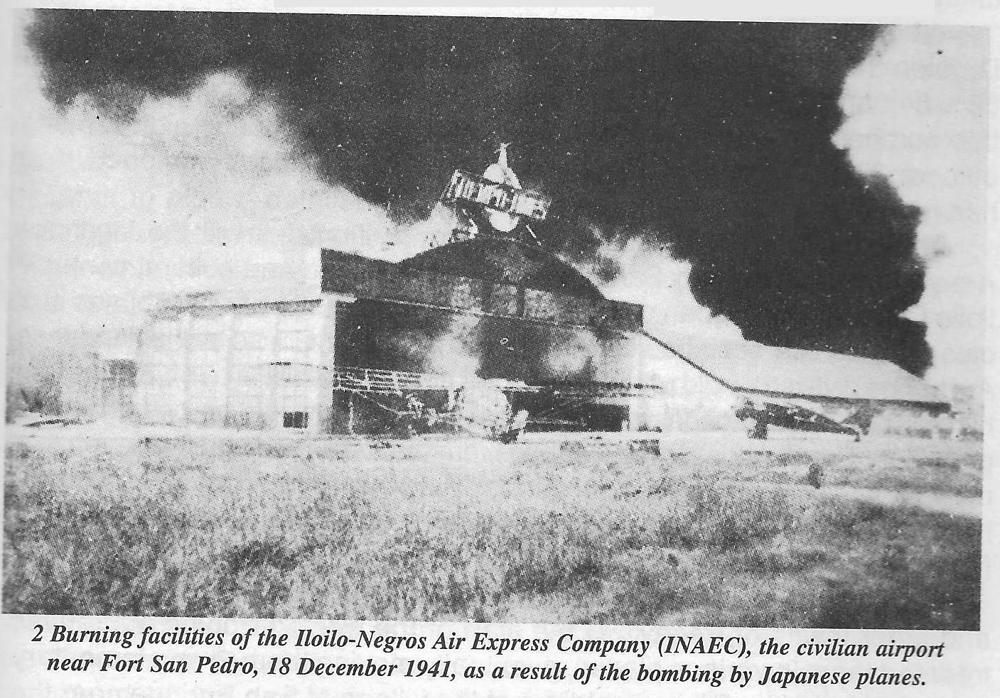 On December 18, 1941, ten days after the start of the Pacific War, 36 Japanese Army (JA) planes raided lloilo City. They accurately bombed and strafed the military airfield at Mandurriao, a civilian airport near Fort San Pedro, the fuel storage tanks at La Paz and the harbor facilifies along the Iloilo River. The incursion covered Iloilo City with flames and smoke, wounded or killed about a hundred people, and created chaos throughout. Some civilians with guns fired like lunatics at the passing airplanes.