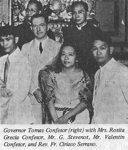 Governor Tomas Confesor (right) with Mrs. Rosita Grecia Confesor, Mr. G. Stevenot, Mr. Valentin Confesor, and Rev. Fr. Ciriaco Serrano.