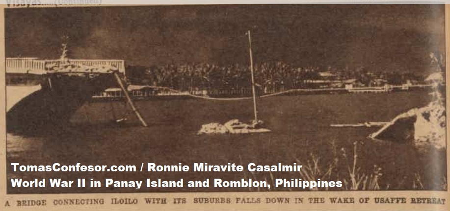 A bridge connecting Iloilo with its suburbs falls down in the wake of USAFFE retreat.